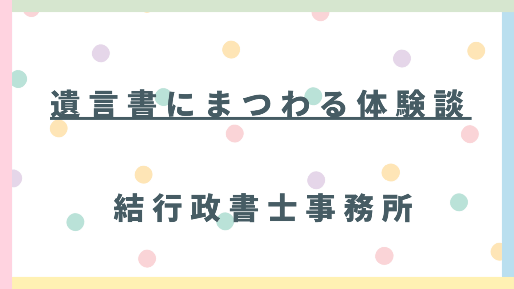 こんにちは!埼玉県東松山市で相続・遺言のサポートをしている結行政書士事務所です。 終活や相続を考える時、「遺言書なんて大袈裟だ」「うちには財産がないから関係ない」と思っていませんか? しかし、遺言書がなかったために相続が … 続きを読む 【体験談】「まさか」を避ける!遺言書なしで家族が地獄を見る6つの落とし穴